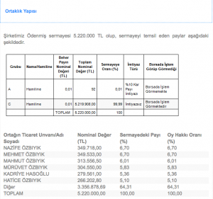 Şirketin iki tür hisse senedi var. Bunlardan A grubu olanın %10 kâr payı imtiyazı var. Bu çok önemli ve temettüyü açıklarken değineceğim. Ayrıca borsada işlem görmüyor.