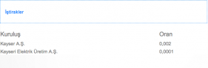 İştiraklerine baktığımda ise iki tane küçük pay sahibi olduğu iştiraki var. Bunlar;