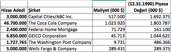 Sınırda oturup beklemek… Wells Fargo, süper yönetilen, yüksek getirili bankacılık operasyonundan FED’in izni olmadan alabileceğimiz maksimum rakam olan %10 aldık. Pozisyonun altıda biri 1989 yılında alındı, kalanı da 1990’da tamamlandı.