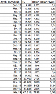 Mart sonunda BIST 100, 93.784 puandaydı. Nisan 2019’u ise 95.416 puandan kapattık. 1 Dolar 5,9693 TL. Borsada kazandığımızı dolar karşısında eritmeye devam ediyoruz. Sterlin 7,78 TL, gram altın ise 246,23 TL’den işlem görüyor.