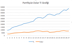 Şimdi de portföyün oluşturulduğu tarihten itibaren dolar karşısındaki durum tablosunu gösterelim.