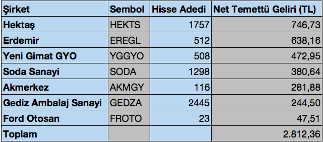 Fiyatların düşmesi ise beni sadece daha az paraya daha çok hisse senedi alacağım için sevindirir. Neyse şimdi temettü tablosunu verelim.