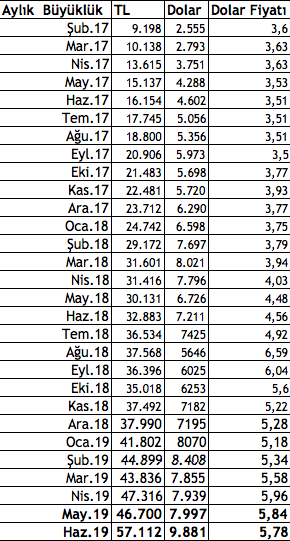 Haziran 2019 sonunda ise; BIST 100 96.485, dolar 5,78 TL, gram altın 262 TL ve sterlin de 7,36’dan günü kapattı.
