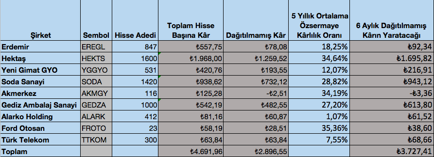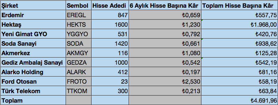 Böylece şirketlerimin altı ayda bana ne kadar para kazandırdıklarını, hisse başı ne kadar kâr ettiklerini bulabileceğim.