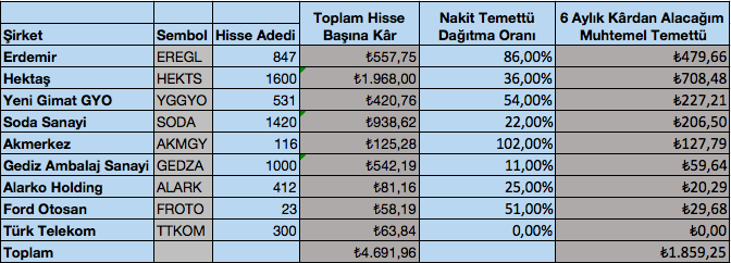 İlk 2019 ilk 6 ay sonuçlarına göre şirketlerimden alacağım muhtemel temettü miktarı