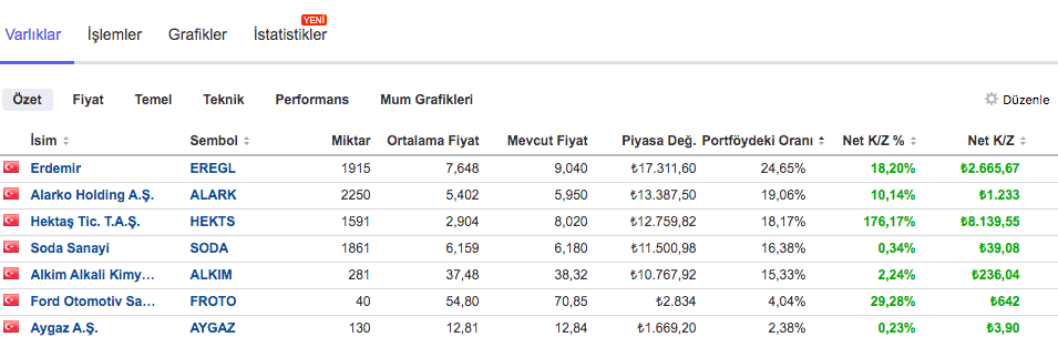 Gelelim portföy durumuna,