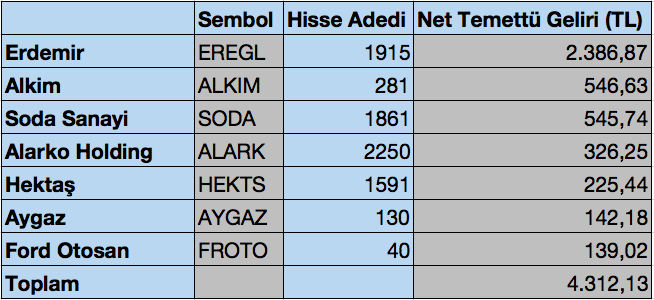 Portföyümden alacağım temettü miktarı 4.312 TL’ye ulaştı.