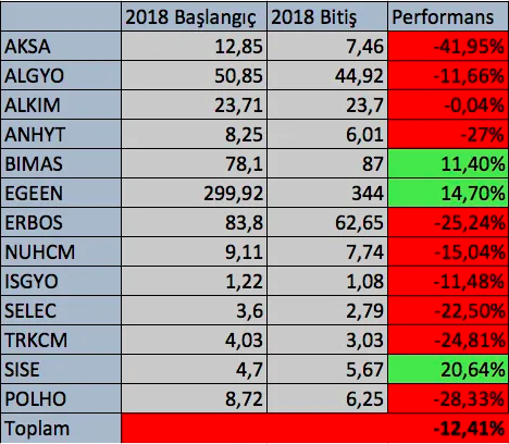 2018’de de temettü padişahlarının getirisi temettü hariç -%12,41 olmuş. Endeksin de -20,86% getirisi varmış.