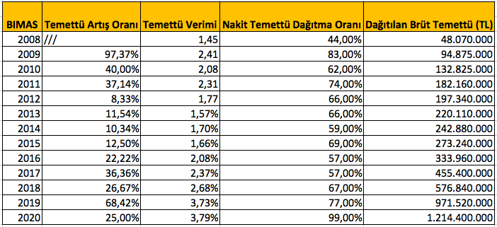 Listedeki bir diğer şirketimiz de BIMAS. Temettü artışı konusundaki rekorun sahibi. Tam 12 yıldır temettüsünü arttırıyor.