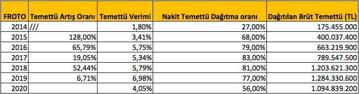 FROTO senede iki defa temettü veriyor fakat bunun ikisini de sene başında açıklamıyor. Bu yüzden de sene başındaki listeye hemen ekleyemiyorum.