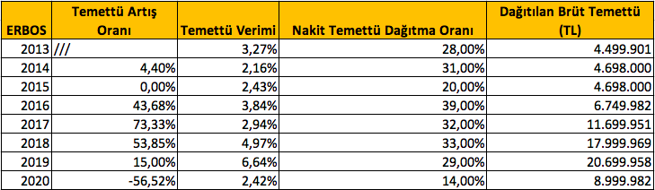 ERBOS 2020 yılında temettüsünü azaltarak listeden çıktı. Şirket 6 senedir temettüsünü arttırıyordu. Şimdi listeye bakalım.