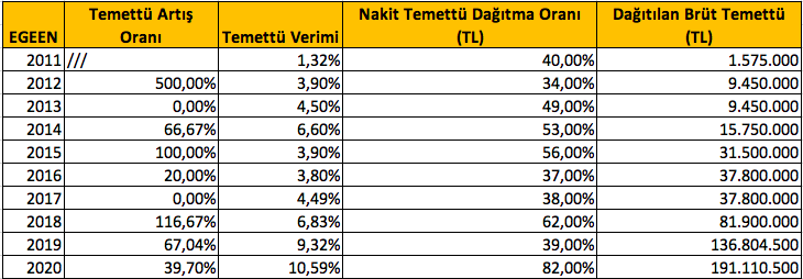 Listedeki bir diğer şirketimiz de EGEEN. Temettüsünü tam dokuz senedir arttırıyor.