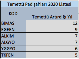 Temettüsünü artıramayan şirketleri listeden çıkardığımıza göre sıra 2020 listesini vermeye geldi.