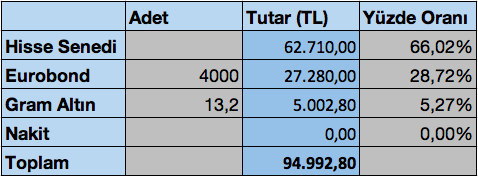 İkinci olarak, geçen ay değiştirdiğim portföy dağılımı iyice oturttum. Artık %66 hisse senedi, %28 Eurobond ve kalanı da altından oluşan bir portföyüm var. Ayrıntısını yazıda geçeriz.