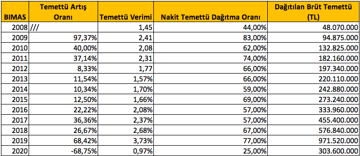 BIMAS Temettü Geçmişi
