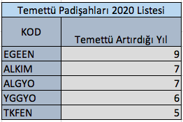 Temettü Padişahları (Temettüsünü en az 5 yıl arttıran şirketler) 2020 Güncellemesi