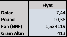 Böylece tablodan doların da Ağustos 2020 seviyesine döndüğünü görmüş olduk.