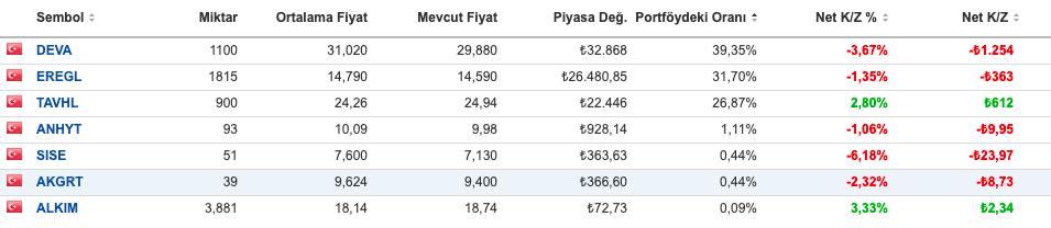 Büyük pozisyonlarım olan DEVA ve EREGL’nin yanına bu ay TAVHL’yi ekledim. Hepsinin portföydeki oranı neredeyse birbirine eşit.
