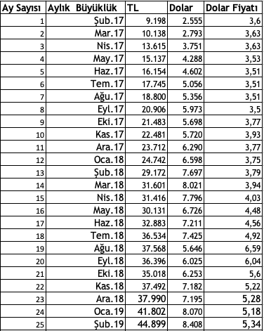 Şimdi de 49 aylık Dolar-TL geçmişine bakalım.