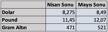 Dolar 8,49’dan, pound 12,07’den, gram altın ise 521 TL’den ayı kapattı.