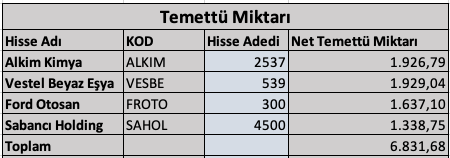 Portföyün temettü geliri 6.831 TL’ye ulaşmış durumda.