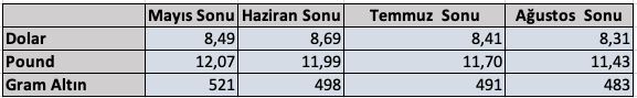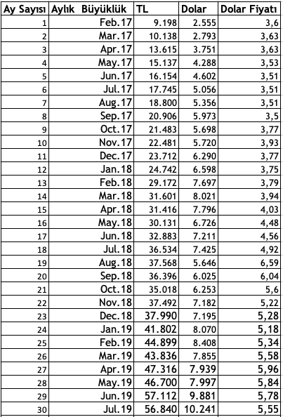 Şimdi geleneksel dolar-TL tablomuza bakalım.