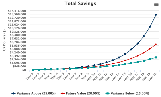 Her ay 2.000 TL biriktiren bir yatırımcı, parasını %20 getiri oranıyla, 20 yıl boyunca aylık bileşik faiz olacak şekilde yatırıma yönlendirirse;