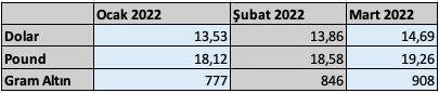 Dolar yılın ilk çeyreğini 14,69 TL’den kapattı. Pound tekrar 19,26’ya yükseldi ve tekrar 19 TL’nin üzerine çıkmış oldu. Gram altın da 908 TL’den ilk çeyreği kapattı.