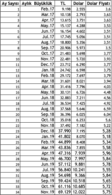 LTB Aylık Dolar-TL Durumu