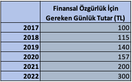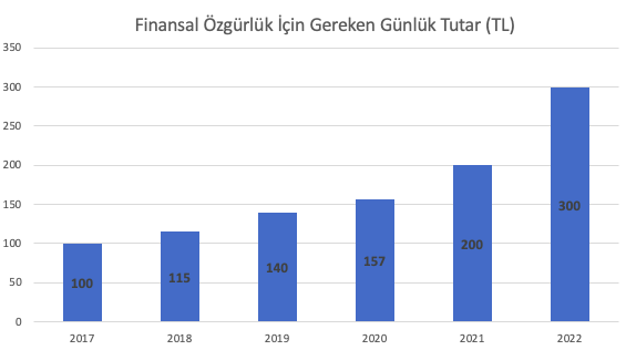 2021 yılında finansal özgürlük için gereken günlük tutar 200 TL’ye ulaşmıştı.