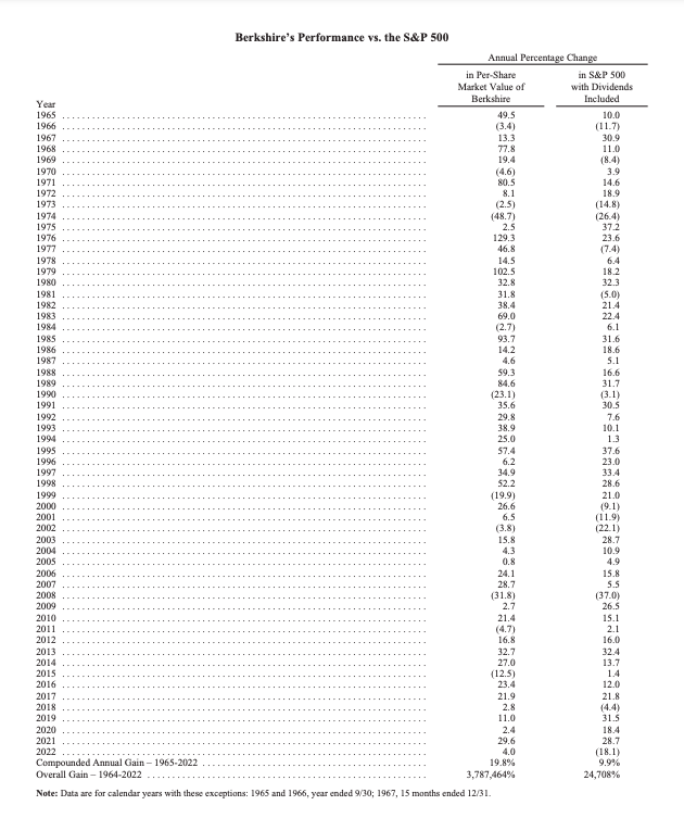 Berkshire’ın 2022 faaliyetleri ile ilgili neredeyse sonsuz ayrıntılara K-33 ve K-66’dan ulaşabilirsiniz. Charlie ve ben, diğer birçok Berkshire hissedarı gibi bu bölümü dikkatle okumaktan büyük keyif alıyoruz. Fakat bu sayfalar okunmak zorunlu değil. Berkshire’ın yüz milyonları ve milyarları olan birçok hissedarı, bu finansal figürleri hiç incelemedi. Onlar sadece Charlie ve benim Berkshire’da kayda değer yaratan yatırımlar yapmaya devam edeceğimizi biliyorlar ve paralarını kendi paramız gibi yöneteceğimiz konusunda bize güveniyorlar.