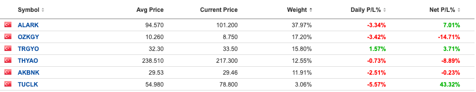 Biraz sadeleştim ve iki adet GYO’ya giriş yaptım. ALARK en büyük pozisyonum olmaya devam ediyor.