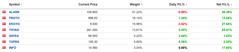 Bu ay bir değişiklik yapıp finansal özgürlük portföyü için Fintables’ın platformunu kullanmaya başladım. Alım satıma şimdilik dört aracı kurumdan izin veriyorlar ve bunların içinde İş Bankası olmadığı için portföyü sanal olarak oluşturmak zorunda kaldım. Umarım büyük aracı kurumlarla da anlaşmalarını geliştirirler ve tek platformdan bilgi girişi ile işleri halledebiliriz.