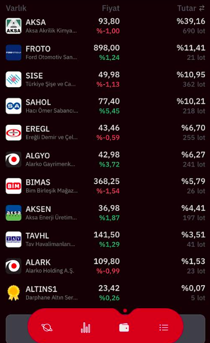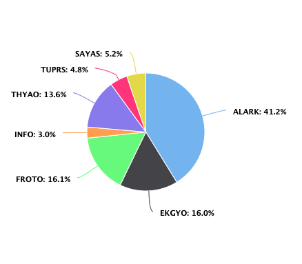 Hisse senedi pozisyonları ALARK ağırlıklı olmak üzere devam ediyor. Bunun yanında FROTO, EKGYO ve THYAO da önemli ağırlığa sahip hisse senetleri.