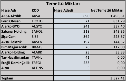 Şimdi de bu portföyden alacağım temettü gelirine bakalım.