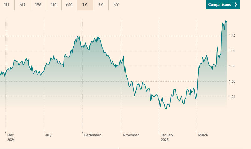 1 yıllık Euro/Dolar Grafiği Kaynak:FT