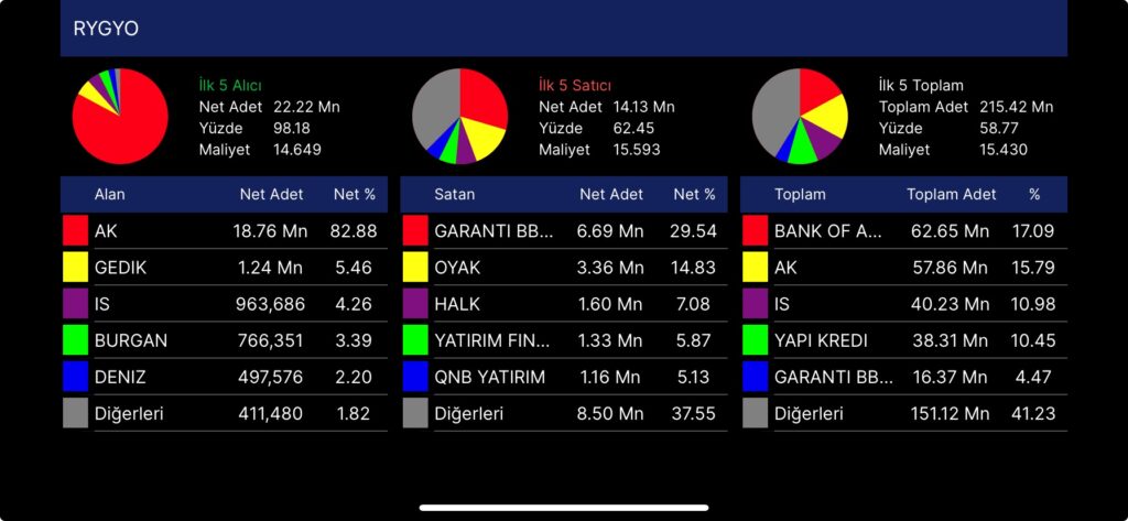 Yabancı olduğunu tahmin ettiğim bir yatırımcı 1 ay boyunca Ak Yatırım üzerinden çok da tahtayı kaldırmadan usul usul, her gün toplamda 18-20 milyon lot arası hisse satın aldı. (aynı aracı kurumdan satanları bilmiyorum. Rakam daha da yüksek olabilir)