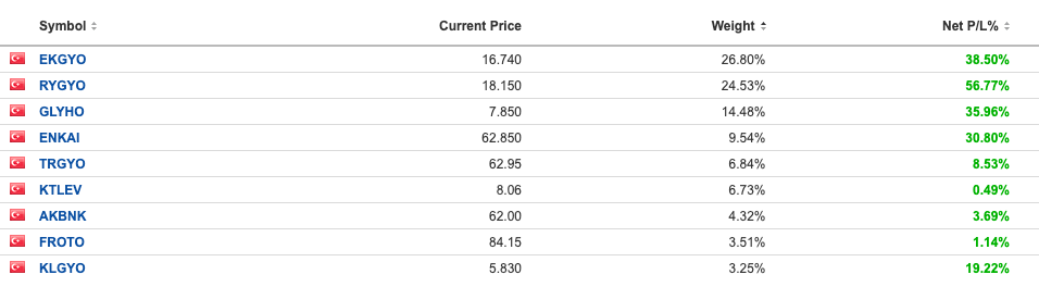 Hisselerim bunlar fakat göz ucu ile banka ve aracı kurumları da takip ediyorum.