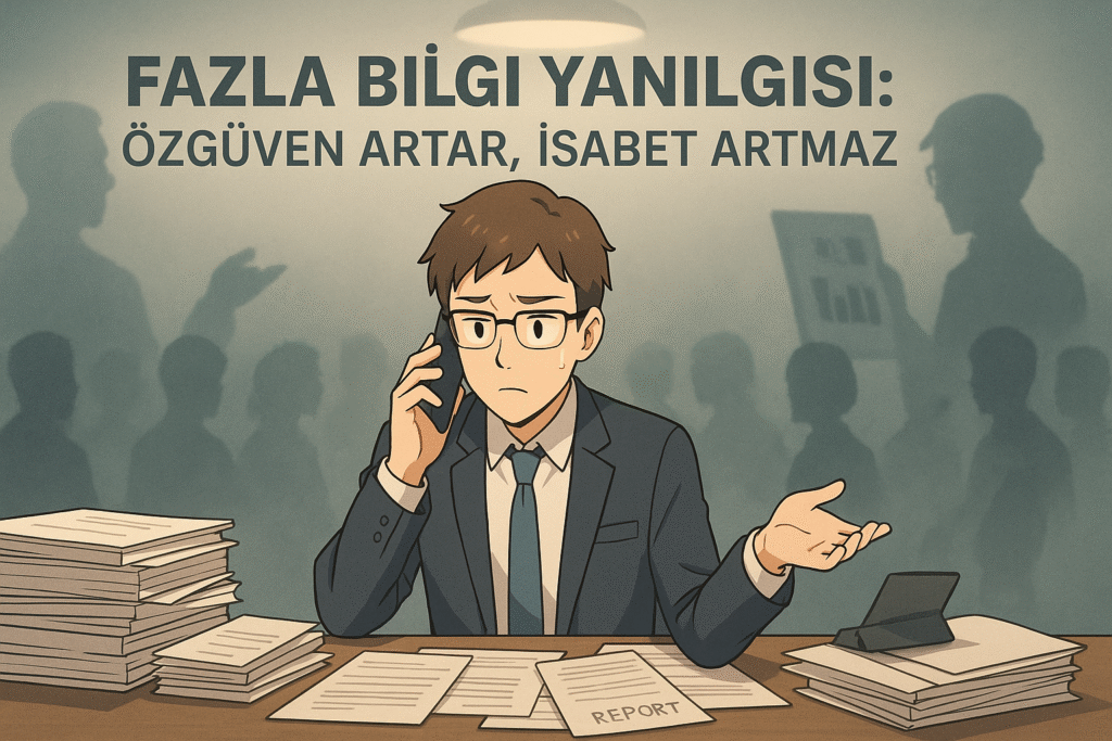 Fakat yapılan araştırmalarda ulaşılan bir sonuç var: Fazla bilgi öz güveni artırır ama isabet oranını artırmaz. Yani daha çok bilgi toplamak; sizi daha doğruya eyleme değil, sadece daha emin hissetmeye götürür. Hatalı pozisyondayken kendine daha fazla güvenmek de tahmin edersiniz ki çok tehlikelidir.