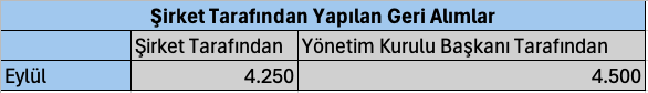 Eylül ayı içerisinde şirketin kendisi tarafından 4.250.000 lot geri alım yapıldı.