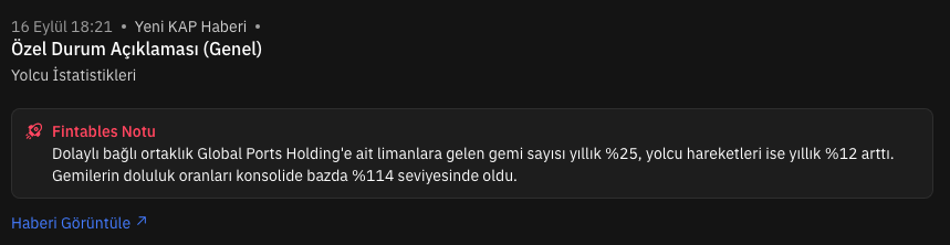 Hissede bunun dışında yeni bir liman alımı ya da diğer iş kollarında bir hareketlilik KAP’a yansımadı.