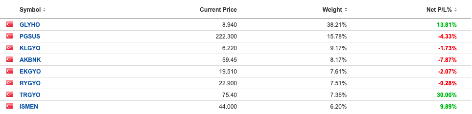 Bu ay hisse senedi portföyünde biraz değişiklik yaptım. GLYHO payını arttırdım. RYGYO pozisyonuna da eklemeye yapmaya devam ettim.