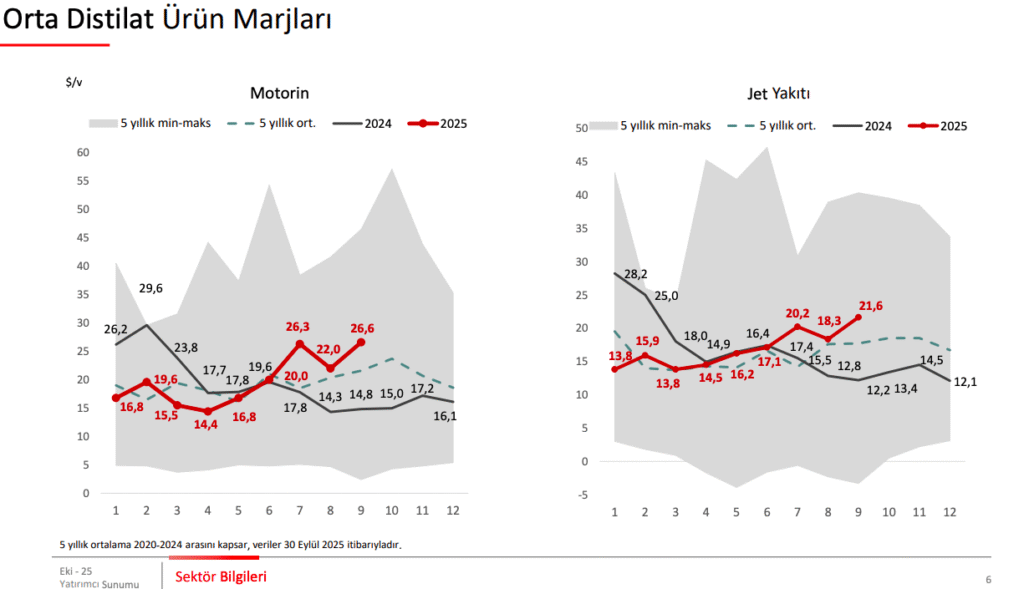 Ukrayna’nın Rusya rafinerilerine düzenlediği saldırıların ve kullanım dışı kalan rafinerilerin etkisi ile motorin ve jet yakıtı fiyatları petrol fiyatlarındaki düşüşe rağmen dik duruyorlar. Bu da olumsuz bir durum.