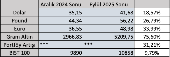 Yıl Başından Beri Döviz-Altın ve Portföyün Gelişimi